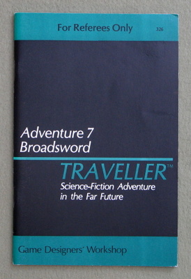 A comparison photo between the US and UK editions over at our Game Gallery. "Looking for work is a constant chore for travellers. On Utoland, they find that the help wanted ads in the local paper may give them more than they bargained for ... terrible jobs that pay next to nothing, great jobs that can bring them fortunes, and the start of an adventure that takes them across the border into Zhodani territory." 1981 ... 48 pages ... GDW 325 Check Wayne's Books Inventory ![]() Adventure 7: Broadsword