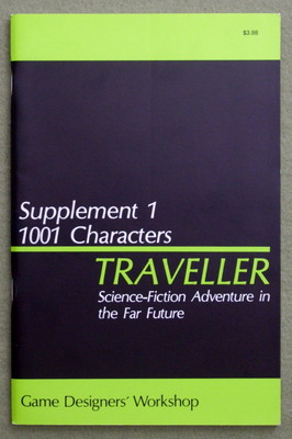 "At last, the complete guide to the construction and use of robots in Traveller. Add a completely new dimension to science fiction adventure with Robots. Rules, essays, and data included in Robots are * A history of robots in the Imperium. * A look at the robots of other races. * Rules for robot construction. * Encounter and Generation tables which will integrate robots right into your campaign." 1986 ... Joe D. Fugate, Sr. & Timothy B. Brown ... 56 pages ... GDW 344 ... ISBN 0943580102 Check Wayne's Books Inventory ![]() Supplements Supplement 1: 1001 Characters