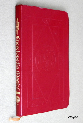 "Did you ever wonder what a phylactery is? Do you know what the difference between a cloak and a robe is? The Magic Encyclopedia answers these questions with succinct definitions of every type of item found in a magical treasure hoard, and every definition has an illustration. The list of definitions in Volume Two runs from Goggle to Zwieback, and completes the list begun in Volume One. The listing includes an experience point value and a gold piece sale value for each item. At last, you'll know exactly what every bauble in any hoard is really worth. The listing also identifies the product where the item is described and the page number where you can find it. A complete list of those products (current through December, 1991) is also provided." 1993 ... 96 pages ... TSR 9421 ... ISBN 1560765631 Check Wayne's Books Inventory ![]() ![]() Encyclopedia Magica series, 1995 & 1999 printings. Spines. The original bible-cover series got a second printing in 1996. -Wayne ![]() Encyclopedia Magica Volume One: A-C