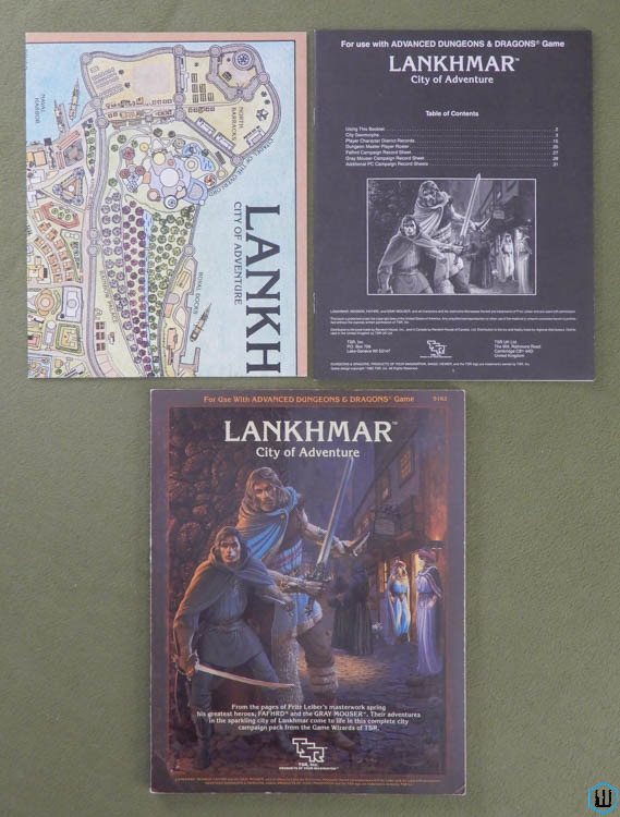 Return to AD&D Central The Fiction: Fafhrd & The Gray Mouser Series BROWSE MY LANKHMAR ITEMS CURRENTLY IN STOCK LankhmarFritz Leiber's Nehwon setting is richly detailed in this series of accessories. The city of Lankhmar especially benefits from this treatment. Maps, buildings, famous personages (more than Fafhrd & the Gray Mouser), and all new stories to tell. Fans -- even non-gamers -- will find these books fascinating.![]() ![]() "LANKHMAR...city of thieves, city of the night, city of adventure. Home of Fritz Leiber's famous heroes, FAFHRD™ and the GRAY MOUSER™; greatest adventurers in the world of Nehwon. The city of Lankhmar springs to life as an exciting Setting for the AD&D® game. Visit the fabled Rainbow Palace, stroll the surly streets of the old town, haggle at the market place or risk the winding maze of the Tenderloin, From the wharves and shipyards to the dark sewers of this mighty metropolis,. LANKHMAR takes you on a full tour. Also included are many encounters in LANKHMAR and adaptations of the adventures of Fafhrd and the Gray Mouser. Its unique approach makes LANKHMAR a living, changing city. Leave the dungeons and wilderness and step into a new world of intrigue and adventure. Enter the city of LANKHMAR; if you're lucky, you'll get out alive." 1985 ... Bruce Nesmith + Douglas Niles + Ken Rolston + Jeff Easley (art) ... 96 pages + map booklet + color fold-out map ... TSR 9162 ... ISBN 0880382473 Check Wayne's Books Inventory ![]() ![]() Updated for 2nd edition AD&D. -W "LANKHMAR… city of thieves, city of the night, city of adventure. Home of Fritz Leiber's famous heroes, FAFHRD and the GRAY MOUSER, the greatest adventurers in the world of Nehwon. The city of Lankhmar springs to life as an exciting setting for the AD&D 2nd Edition game. 1993 ... 160 pages + fold-out map ... ISBN 1560766581 Check Wayne's Books Inventory ![]() ![]() "The adventure is divided into three scenarios, The Secret of Urgaan of Angarngi by Carl Smith, The Web of Mog by Bruce Nesmith, and Claws of the Shree-kah by Douglas Niles. Each is playable separately within one evening session of gaming, or as a whole, in one single adventure. During the first scenario, The Secret of Urgaan of Angarngi, the party acquires a treasure map and eventually sets out on an expedition to recover the forgotten treasure. This scenario includes the journey through the Sinking Lands to the Treasure House of Urgaan of Angarngi, and the destruction of Urgaan's Mad Tower. Upon beginning the second scenario, The Web of Mog, the characters return from the Sinking Lands to their favorite location, the Silver Eel, where their drink is drugged and their treasure stolen. The party must recover it once again, and be confronted by hostile factions also interested in the treasure. Then Claws of the Shree-kah, the third scenario of this adventure, unveils the horrors lurking in the sewers below Lankhmar, and the secret of the Leviathans." 1985 ... Carl Smith & Bruce Nesmith & Doug Niles ... 32 pages ... TSR 9150 ... ISBN 088038235X Check Wayne's Books Inventory ![]() ![]() "In the dead of the night, a ghastly fog shrouds the deserted streets. Doors are locked, windows shuttered, as a deathly silence haunts the shadows. Almost all of Lankhmar's citizens cower in their homes. Tonight the streets and alleys of Lankhmar belong to the ancient gods - this is the Night of Fear. Whose life will be lost this night - a lonely wench abandoned in the street? Perhaps a young noblewoman betrayed by her family? You can find out, as you venture into the dark and winding streets of Lankhmar. But beware, eyes are already watching you." 1986 ... Stephen Bourne & Michael Dobson & Steve Mecca & Ken Rolston ... 40 pages + poster map of Lankhmar's sewer network ... TSR 9170 ... ISBN 0880382767 Check Wayne's Books Inventory ![]() ![]() "...Within these pages are dozens of short adventures perfect for an afternoon's or evening's enjoyment. Your characters may be hired to protect the Overlord from assassination. They might choose to take positions as caravan guards on a dangerous passage through a crocodile-infested swamp. Or, perhaps they'd prefer a quiet night on the town. (They might well prefer it; the question is, can they find it?)..." 1990 ... Dale "Slade" Henson ... 96 pages ... TSR 9295 ... ISBN 0880388706 Check Wayne's Books Inventory ![]() ![]() "Come to the streets of adventure in the fabled City of Lankhmar! From the alerooms of the Silver Eel (premiered in striking detail), to sewers of Lankhmar Below (the rats revisited); no one knows what will happen next in this celebrated capital of fantasy adventuring. Hire on, in 'A Cask of Trouble,' to guard a wine-tasting from the vengeful Vintner's Guild. Dare, if you will, 'The Red God's Curse,' in which little is as it seems. Aid the wizards Sheelba of the Eyeless Face and Ningauble of the Seven Eyes at an era's end, 'When Walks the Wyrm.' Undertake an expedition of inquiry for the Lankhmar Society of Sages to 'The Land of the Pale Ones.' Learn if the Thieves' Guild really has a hand in 'The House of Mazes.' Beware strange priests and darkest alleys, lest you meet 'A New God.' Finally, no anthology of Lankhmar would be complete without a trip to its maze-like sewers, wherein rages 'War in Lankhmar Below' (a follow-up to the adventure 'Return of the Rats,' from CA2, Swords of Deceit). The latest 64-page LANKHMAR anthology contains seven original adventures for a party of four to eight characters, levels 3 to 10." 1991 ... Anthony Pryor ... 64 pages ... TSR 9329 ... ISBN 1560761350 Check Wayne's Books Inventory ![]() ![]() The title page has a misprint, the Forgotten Realms logo on a Lankhmar product. -Wayne "Thieves of Lakhmar is a companion volume to the AD&D game accessory, Lankhmar, City of Adventure and further enhances the exciting, dark, and dangerous setting of that Nehwonian city. Thieves of Lakhmar is the definitive sourcebook for any and all who are interested in the Thieves' Guild, per
