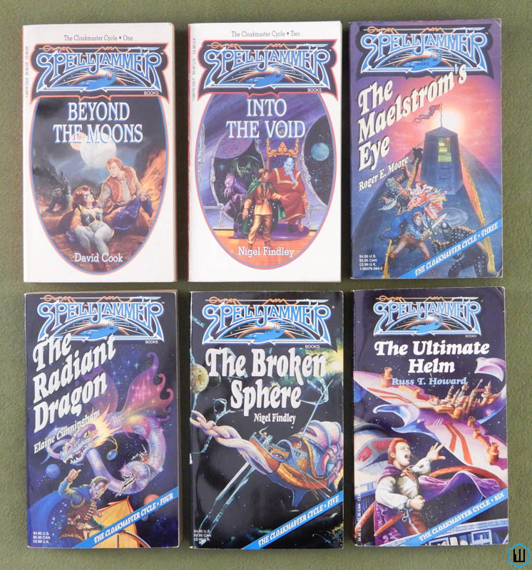 CREATURES: Alchemy Plant; Allura; Aperusa; Autognome; Bionoid; Bloodsac; Buzzjewel; Constellate; Contemplator; Dohwar; Dragon, Moon; Dragon, Sun; Dragon, Stellar; Dreamslayer; Dweomerborn; Fal; Feesu; Firebird; Firelich; Flowfiend; Gadabout; Gammaroid; Gonn; Gossamer; Grav; Great Dreamer; Greatswan; Grell, Colonial; Gullion; Insectare; Lhee; Mercurial Slime; Meteorspawn; Monitor; Owl, Space; Pristatic; Scro; Selkie, Star; Silatic; Skullbird; Sleek; Sluk; Space Swine; Spirit Warrior; Sphinx, Astro; Starfly Plant; Stargazer; Undead, Stellar; Witchlight Marauders; Xixchil; Yitsan; Zurchin. "Prepare to be boarded! Here are still more new, inventive, dangerous, and entertaining creatures and races for your SPELLJAMMER campaign setting! There are giant undead insects, star gypsies, space plants, and much, much more awaiting your stellar travelers in these pages. Elven war-beasts, giant space turtles, orcish death-creatures, and other beings of the phlogiston, crystal spheres, and wildspace roam this volume. Some look nasty, and are; some look nasty, and aren't. Which are which? Read the entries and find out for yourself! And of course, they are organized into five-hole-punched pages that fit right into your Monstrous Compenium binders." 1991 ... 32 pages + 4 dividers ... TSR 2119 ... ISBN 1560760710 Check Wayne's Books Inventory ![]() Cloakmaster Cycle![]() The Cloakmaster Cycle The Spelljammer adventures of Teldin Moore. 6 Volumes: Beyond The Moons, Into The Void, Maelstroms Eye, Radiant Dragon, Broken Sphere, Ultimate Helm Authors: Cook, David & Nigel Findley & Roger E. Moore & Elaine Cunningham & Russ T. Howard Check Wayne's Books Inventory ![]() Wizards of the Coast owns (and holds trademark to) the AD&D game and Spelljammer in all forms.| CORE RULES | Al-Qadim | Birthright | Dark Sun | Dragonlance | Forgotten Realms | Greyhawk | Kara-Tur | Lankhmar | Monstrous Arcana | Mystara | Planescape | Ravenloft | Spelljammer | Non-TSR AD&D | AD&D - Spanish/Español | | 2300 AD | 7th Sea | AD&D | Aftermath! | Albedo | Aliens | Arduin | Alternity | Amazing Engine | Amber Diceless | Ars Magica | Atlantis | Babylon 5 | Battletech | Boardgames / Wargames - Other | Boot Hill | Buck Rogers | Bushido | Call of Cthulhu | Castle Falkenstein | Chill | Chivalry & Sorcery | Conan | Cyberpunk | Cyborg Commando | Dark Conspiracy | DC Heroes | Deadlands | Doctor Who | DragonQuest | Dream Park | Dune | Dungeons & Dragons | Dying Earth | Earthdawn | Elfquest | Elric / Stormbringer | Everway | The Fantasy Trip | Foreign Language Roleplaying Games | Game of Thrones | Gamma World | GangBusters | Gear Krieg | Ghostbusters | GURPS | Harn | High Fantasy | Indiana Jones | James Bond | Jorune | Judge Dredd | Justifiers | Living Steel | Lords of Creation | Man, Myth & Magic | Marvel Super Heroes | Middle Earth Role Playing | Midkemia | Military Roleplaying Stockpile | Millennium's End | Miscellanea | Morrow Project | Mythus - Dangerous Journeys | Nightlife | Pendragon | Phoenix Command | Powers & Perils | Red Sonja | Renegade Legion | Riddle of Steel | Ringworld | Robotech | Rolemaster | Runequest | Shadowrun | Sovereign Stone | Space 1889 | Space Master | Space Opera - Other Suns | Star Ace | Star Frontiers | Star Trek | Star Wars | Super Hero RPGs | Talislanta | Talisman | Tekumel | Terminator 2 | Thieves' World | Timemaster | Top Secret | Traveller | Tribe 8 | Tunnels & Trolls | Twilight: 2000 | Villains & Vigilantes | Warhammer | Whispering Vault | Willow | Witchcraft | Ysgarth | CAMPAIGN BUILDING | RPG MAGAZINES | Avalanche Press | Avalon Hill | Bard | Chaosium | Columbia Games | Dream Pod 9 | Fantasy Games Unlimited (FGU) | FASA | Flying Buffalo | Game Designers Workshop (GDW) | Gamelords | Gamescience | Games Workshop | Judges Guild | Leading Edge Games | Mayfair Games | Metagaming | Pacesetter | Palladium | SPI | Steve Jackson Games | Tri Tac | TSR | Victory Games | West End Games | White Wolf | Wizards of the Coast | Yaquinto Publications | | Return Home | What's New | Contact WaynesBooks.com | |