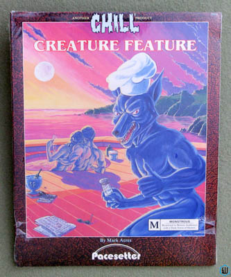 BROWSE MY CHILL ITEMS CURRENTLY IN STOCK ![]() ![]() Chill: Adventures into the Unknown, a Frightfully Fun Role Playing Game [BOX SET] "Fear runs down your spine like ice water. Pressing your shoulder more firmly against the door; of the rotting cottage, you hope that your strength can prevail against the beast that hunts you. It lurks somewhere outside -- waiting, watching. If only someone else had been sent out into the night, into the swamp to battle this creature. All has been quiet for two hours now. The monster wants you to believe that it has given up, gone to hunt less wary prey. But you know it can't be far away, for the night is silent as a grave and the air is fitted with a deathly CHILL. CHILL™: Adventures into the Unknown takes the role playing game: one step beyond, into the eerie realm of ghostly horror. In this box lies everything you need to create an entire world of terrifying adventure. Inside, you will find a 64-page Campaign Book, a 32-page manual of creatures, a 16-page adventure, three dice, playing pieces, a large color map and a special introductory rules folder which allows you to begin playing within minutes of opening this box. Cross the threshold. Venture out into the night fog and enter the world of CHILL." 1984 ... Gali Sanchez & Garry Spiegle & Mark Acres ... Pacesetter Games 2001 ... ISBN 091760900X Check Wayne's Books Inventory ![]() Black Morn Manor: Chill Adventure Board Game