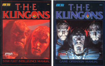 1ST EDITION (1984) CONTENTS: * Introduction to Starship Combat (8 pages) * Book One: Basic Starship Tactics (8 pages) * Book Two: Advanced Rules (24 pages) * Book Three: Starship Data and Combat Charts (16 pages) * Booklet of Master Control Panel & other record sheets * 78 color playing pieces (76 + 2 planets) * Half countersheet of 112 record-keeping counters * 22" x 33" fold-out map * 20-sided die. 2ND EDITION (1985) Added "Role Playing" and "Second Edition" to the title on the box lid. CONTENTS: * 64-page Rulebook * Master Control Panel (combat sheets booklet) * 78 color playing pieces * 22" x 33" fold-out map * Small sheet of status counters * 20-sided die. "Take command of the bridge in this exciting role-playing game of starship combat. Be the captain or a senior officer in the USS Enterprise, a Romulan Bird Of Prey, a Klingon D-7 Cruiser or one of 20 different ships from the STAR TREK universe. Or you may choose to be a Fleet Admiral commanding several ships, plotting with your sub-commanders to hide in asteroid fields, lay traps with deadly gravitic mines, or battle for planets in this fast-paced game. The options are unlimited, so choose your role. Add action of starship combat to your campaigns." 1984, 1985 ... FASA 2006 ... ISBN 0931787068 (1st ed: 0425069788) Check Wayne's Books Inventory ![]() Sourcebooks The Klingons: Star Fleet Intelligence & Game Operation Manuals [2 BOOK SET]