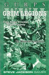 "Winston Churchill promised the British forces would "never give up, never surrender." Now you can fight as one of His Majesty's own in GURPS WWII: All the King's Men! Watch as the storm clouds gather over Europe in the late '30s . . . and an unprepared England declares war against Germany in its fighting prime. Experience the fear and heroism of Dunkirk, the sweltering seesaw of Africa, and the final triumphs of the Anglo-American campaigns as a battered British Empire pulls victory from the jaws of darkest defeat! All the King's Men has the same level of background and color found in Iron Cross for German combatants and Dogfaces for American troops. It describes soldiers from all around the British Empire, the way they were recruited, trained, and sent to war, the men who led them, and the battles they won and lost. Also included are a cross-section of British weapons and equipment - from the very good to the very bad, from sidearms to the battleship King George V - and a host of campaign and adventure ideas for GMs. So, keep your chin up and get your lads in the thick of it - sharpish!" 2004 ... Brian J. Underhill ... 128 pages ... SJG 8009 ... ISBN 1556346409 Check Wayne's Books Inventory ![]() Grim Legions: Italy Seeks Triumph, Finds Tragedy