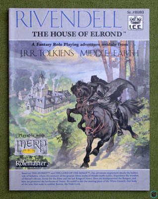 Three low-to-mid level adventures which each stand on their own and can be set up in minutes. From the heart of the Black Wood, the false Cannaigh plots rebellion - but he and his allies have had a falling out. The time is ripe to collect the reward on his head. Are you brave enough to face an Encounter at Traith-chefudoc? Pirates from the south sail from a hidden harbor on the Dark Cape coast. Loot, lives, and a ship are at stake. Do you dare challenge The Sea-raiders at Minas Thonfalon? The remnants of the ancient Petty-dwarf race haunt the Black Wood. Their involvement in dark schemes may embroil the entire region. Are you willing to venture Into the Meur Tol? Face the dangers of Beffraen, Petty-dwarves, and Undead as you seek the Raiders of Cardolan in these 3 exciting adventures! 1988 ... Jeff McKeage & Coleman Charlton & Peter C. Fenlon & Daniel Horne (cover) & Liz Danforth (interior art) ... 32 pages ... ICE 8108 ... ISBN 1558060057 Check Wayne's Books Inventory ![]() Rivendell: The House of Elrond