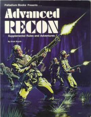 "RECON is the first and only role-playing game of modern warfare. It is a game system designed for quick playability and to simulate the kind of counterinsurgency warfare fought in the Vietnam War. Players assume characters of elite Recon teams to penetrate enemy lines on missions of rescue, intelligence, espionage and sabotage. Although the game's focus is Vietnam, players are not limited to the 1970's or Southeast Asia. Expanded rules allow players to play contemporary mercenaries or military specialists that can span the world. An extensive hardware section includes helicopters, small arms, heavy weapons, booby traps, artillery, patrol boats, tanks and other vehicles. Highlights Include . . . * Revised rules for role-playing. * The original miniature RPG rules (optional). * Special Rules for compatibility with Heroes Unlimited TMNT™ and the well known Palladium game system. * Helicopter and Modern Weapons combat rules. * Expanded weapons section including US and Soviet weapons and vehicles. ALL illustrated. * Booby Traps and Tunnel Rats. * The contemporary mercenary! * Nearly a dozen NEW adventure secnarios. * $14.95 (post paid)" 1989 ... 150 pages ... Palladium 610 ... ISBN 0916211193 Check Wayne's Books Inventory ![]() Advanced Recon: Supplemental Rules and Adventures